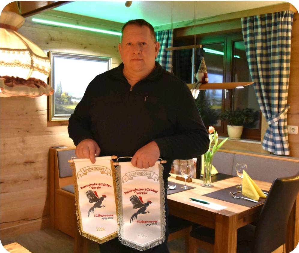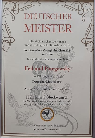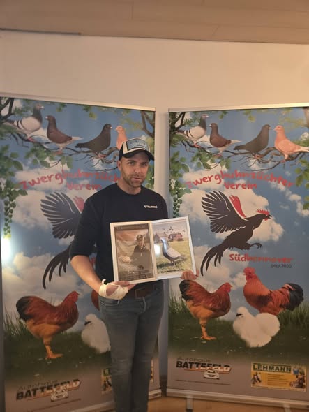 Und mit seinen Zwerg Seidenhühner perlgrau ebenfalls Europachampion ![]()