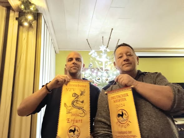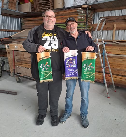 Zu Besuch in der Rote Erde Halle! Die Erringer der Bänder anlässlich der Revierschau auf NL Schönheitsbrieftauben im Oktober 2024. Herzlichen Glückwunsch Stephan Pelz